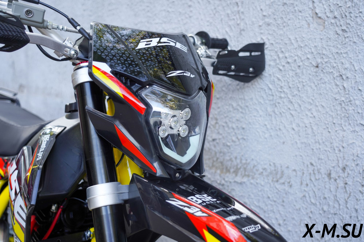Прогрессия задней подвески, регулируемая энергоемкая подвеска, вилка “перевертыш”, стальная рама повышенной жёсткости с усилителями, буксаторы на усиленных ободах, усиленная 520 цепь, внедорожная резина – BSE Z3 V не спасует в условиях серьезного бездорожья.