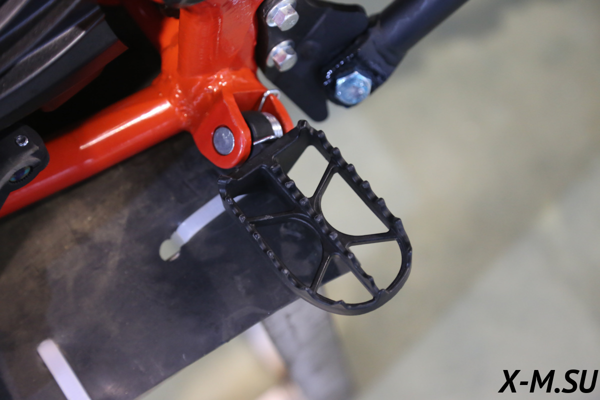 Все узлы качественно проварены, имеются дополнительные усиления. К раме специально прикреплен пластиковый каркас, который защищает мотоботы и раму. Конструкция рамы позволяет обслуживать мотоцикл, регулировать зазоры клапанов и заменять свечи, не снимая двигатель. Задний рычаг изготовлен из авиационного алюминия, что придает высокую жесткость на скручивание.