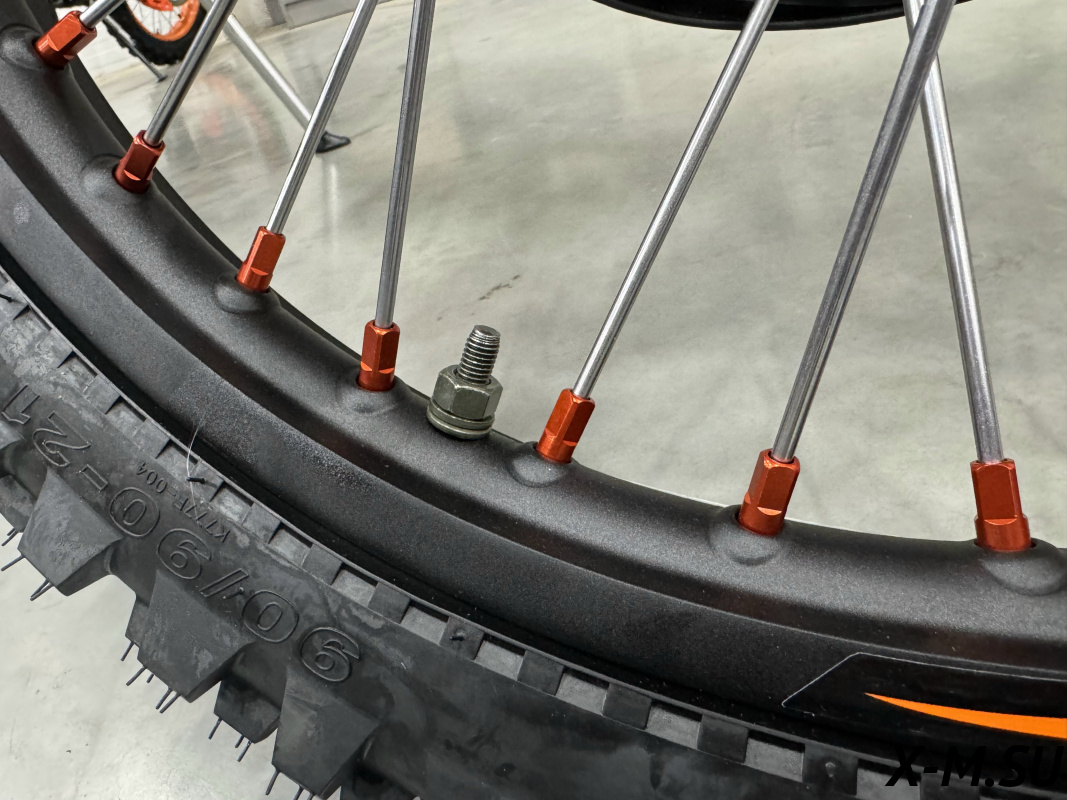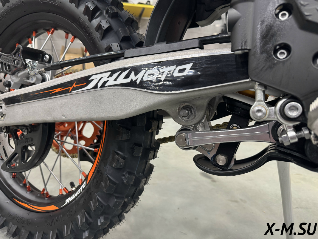 Пластик используется KTM2020 – очень прочный и распространенный, что делает его максимально возможным к обслуживанию. Руль IGP TwinWall 22/28 алюминиевый на всех моделях! Силиконовые грипсы Nibbi Racing – левая на замке, правая на короткоходной ручке газа Nibbi. Рычаги тормоза/сцепления – неломайки, из фрезерованного алюминия от CNC. Влагозащищенные кнопки старт/стоп на руле. Складной рычаг переключения передач, фрезерованный, из алюминия, от бренда PRO CAKEN. Лапка тормоза так же фрезерованная, алюминиевая. Самая легкая и прочная приводная цепь RK520MXZ уже установлена!