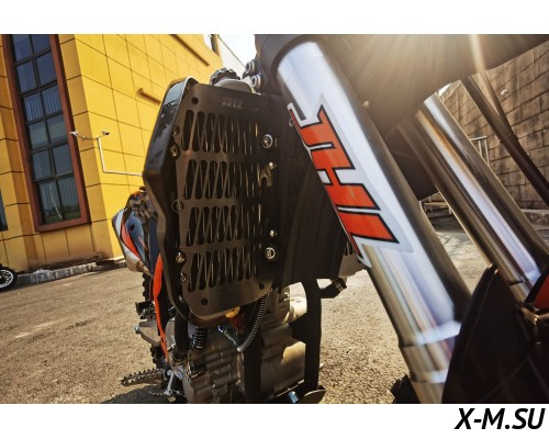 Пластик используется KTM2020 – очень прочный и распространенный, что делает его максимально возможным к обслуживанию. Руль IGP TwinWall 22/28 алюминиевый на всех моделях! Силиконовые грипсы Nibbi Racing – левая на замке, правая на короткоходной ручке газа Nibbi. Рычаги тормоза/сцепления – неломайки, из фрезерованного алюминия от CNC. Влагозащищенные кнопки старт/стоп на руле. Складной рычаг переключения передач, фрезерованный, из алюминия, от бренда PRO CAKEN. Лапка тормоза так же фрезерованная, алюминиевая. Самая легкая и прочная приводная цепь RK520MXZ уже установлена!