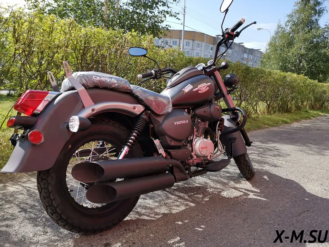 Крутой чоппер, PROMAX YD250-2. Качество сборки на уровне, всё чётко. Мотор работает как часики, езжу каждый день, пока никаких проблем. Посадка удобная, даже на дальняк норм ехать. Внешность - просто улёт! Всем советую, не пожалеете. Только вот зеркала немного вибрируют на высоких скоростях, но это мелочи.