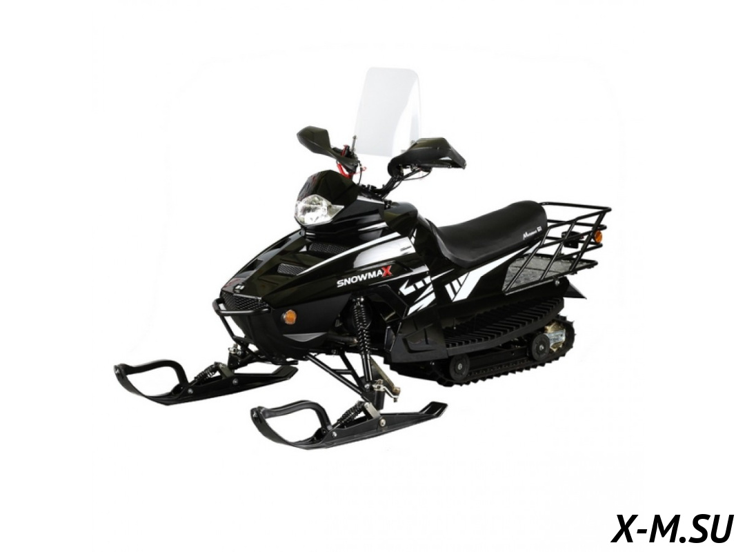 Снегоход Snowmax 200 полностью адаптирован для эксплуатации в условиях русских зим. Снегоход со снаряжённой массой 168 кг, способен передвигаться по снегу с максимальной скоростью 50 км/ч. В его базовую комплектацию входит ветровое стекло, пластиковая защита рук, задний металлический багажник, выполненный в виде вместительной корзины. На снегоходе имеется подогрев курка газа и ручек руля, а значит управлять им стало еще комфортнее, ведь ваши руки не замерзнут даже в самый лютый мороз.