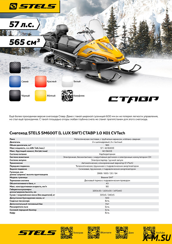 Цена на товар Снегоход STELS СТАВР SWT600 LUX (60 гусеница) не является итоговой и может измениться в зависимости от валютных курсов, общей экономической ситуации или логистических и иных факторов.