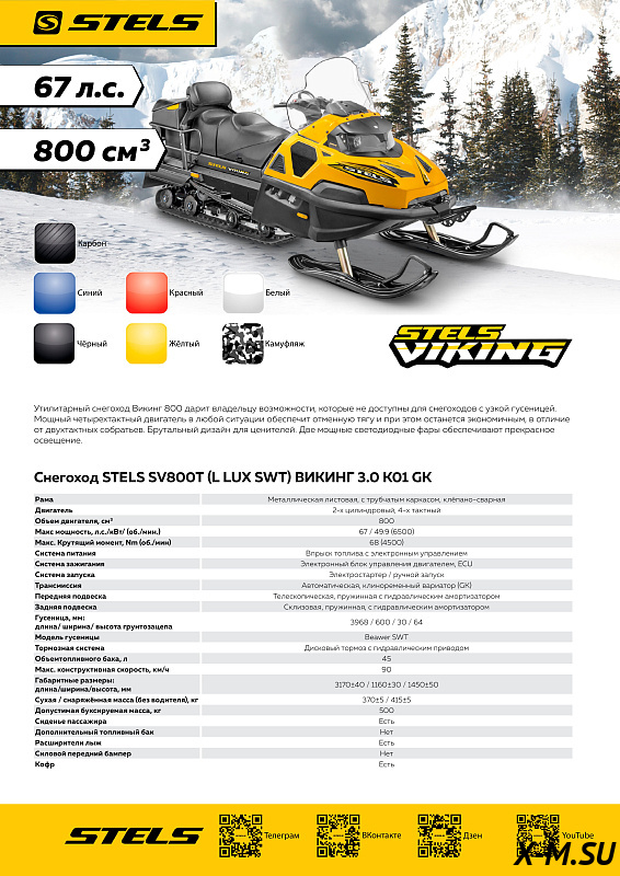 Цена на товар Снегоход STELS ВИКИНГ (VIKING) SV800T LUX V3.0 K01 SWT GK не является итоговой и может измениться в зависимости от валютных курсов, общей экономической ситуации или логистических и иных факторов.
