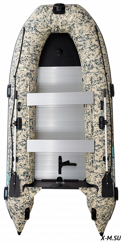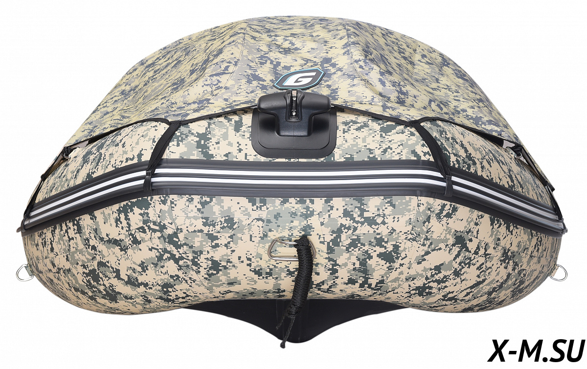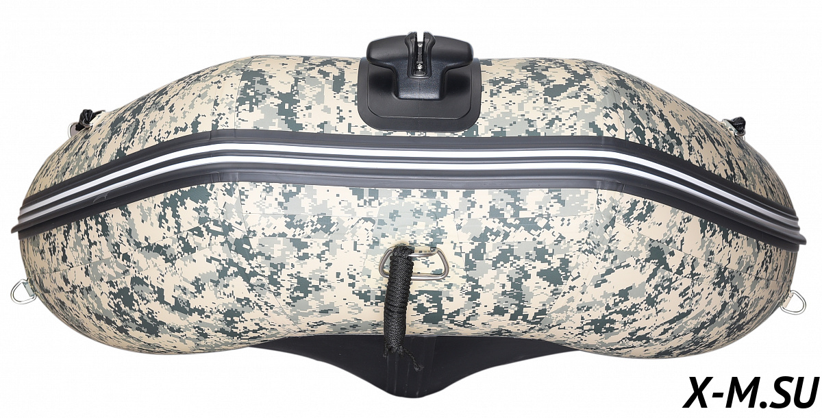 Выполнена из ПВХ плотностью 1100 г/м2. Киль и баллоны укреплены броней: дополнительно проклеены 5 мм полиуретановой лентой, что многократно увеличивает защиту лодки от повреждений.