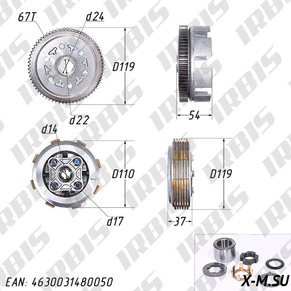 Сцепление в сборе 156FMJ (YX140), 160FMK (YX150/160, ZS155/160) TTR150, KAYO-140/155/160 (4 болта, 5